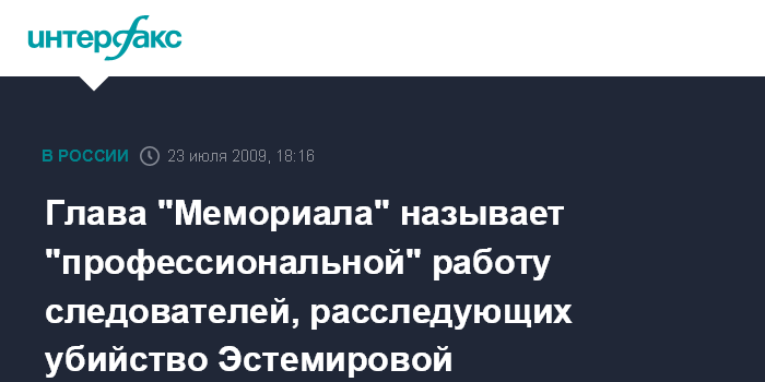 Москва. 23 июля. INTERFAX.RU - Следственные органы, проводящие расследование обстоятельств убийства правозащитницы Натальи Эстемировой, работают профессионально, считает председатель правозащитного центра "Мемориал" Олег Орлов.