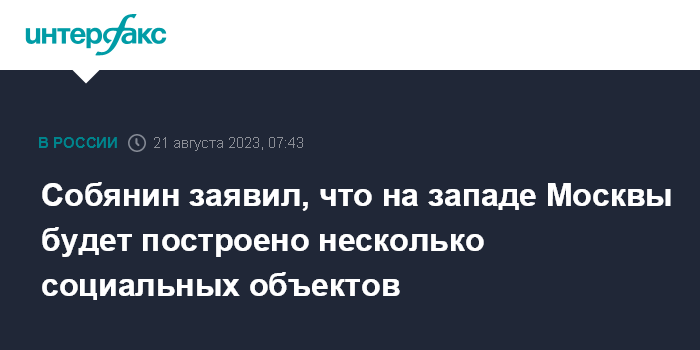 Собянин заявил, что на западе Москвы будет построено несколько социальных объектов