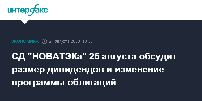 СД "НОВАТЭКа" 25 августа обсудит размер дивидендов и изменение программы облигаций