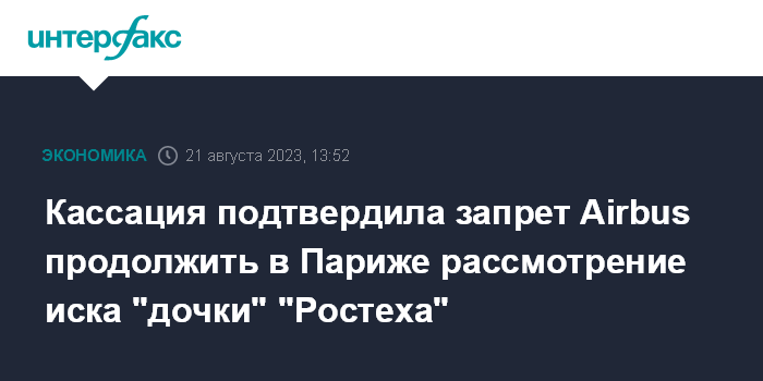 Кассация подтвердила запрет Airbus продолжить в Париже рассмотрение иска "дочки" "Ростеха"