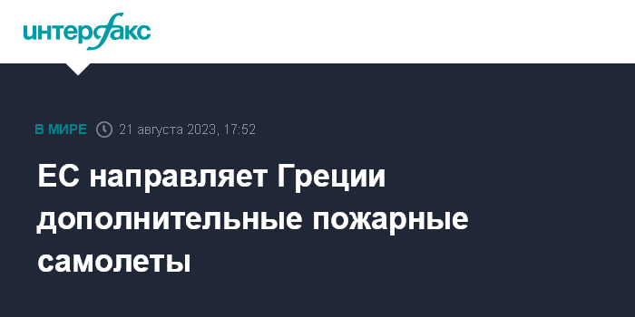 "Поскольку в районе городов Александруполис и Фере в Греции вспыхивают новые пожары, ЕС направляет два пожарных самолета за счет rescEU (стратегического резерва спасательного компонента механизма гражданской защиты ЕС - ИФ), базирующихся на Кипре, и румынскую пожарную команду через механизм гражданской защиты ЕС", - говорится в коммюнике ЕК, опубликованном в Брюсселе.