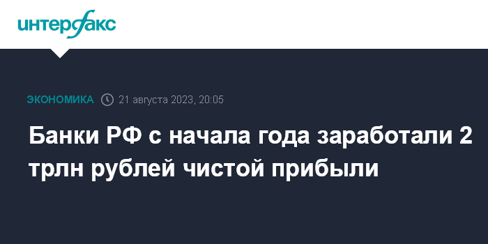 Банки РФ с начала года заработали 2 трлн рублей чистой прибыли