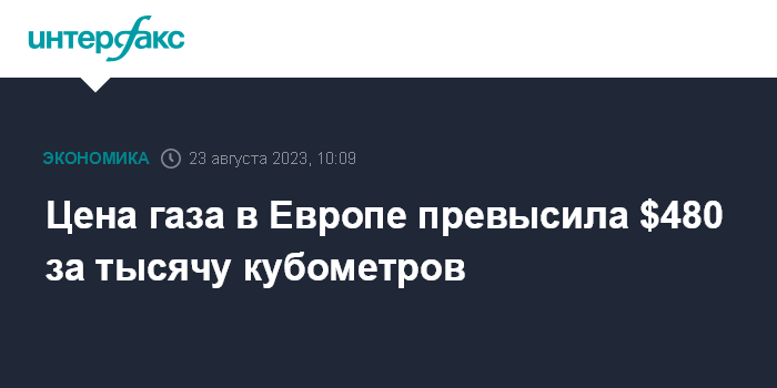 Москва. 23 августа. INTERFAX.RU - Спотовые котировки газа в Европе превысили $480 за тысячу кубометров - это максимальный уровень с середины апреля. На рынке ширится озабоченность трудовым спором на нефтегазовых промыслах в Австралии, который может привести к забастовкам уже на следующей неделе.