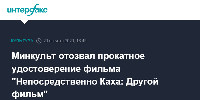 Минкульт отозвал прокатное удостоверение фильма "Непосредственно Каха: Другой фильм"