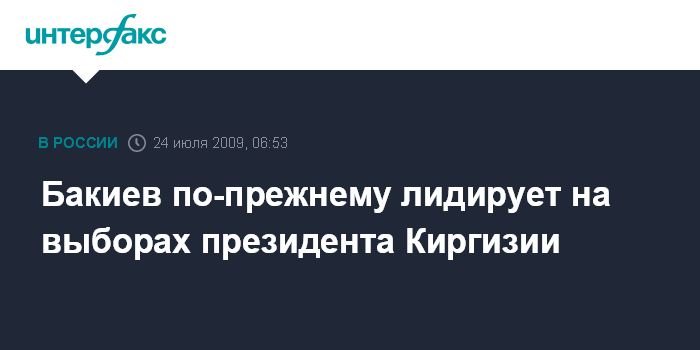 Бишкек. 24 июля. ИНТЕРФАКС - Согласно предварительным итогам голосования, поступающим в ЦИК Киргизии из регионов по каналам электронной системы "Выборы", действующий глава республики, баллотирующийся на второй срок, К.Бакиев значительно опережает своих соперников на выборах президента республики.