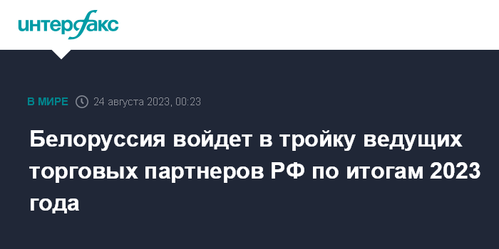 Белоруссия войдет в тройку ведущих торговых партнеров РФ по итогам 2023 года
