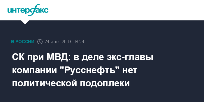 СК при МВД: в деле экс-главы компании "Русснефть" нет политической подоплеки