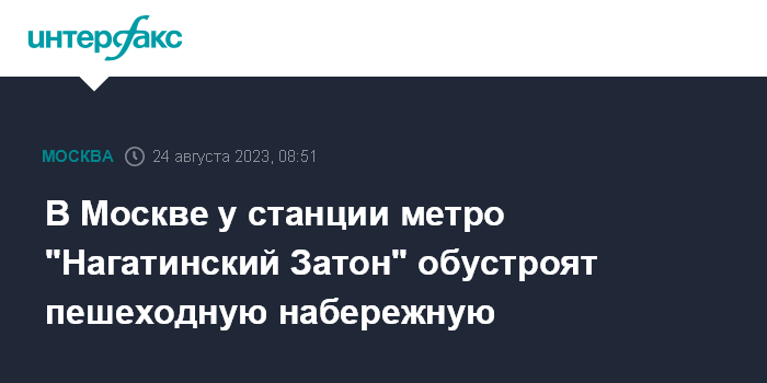 Москва. 24 августа. INTERFAX.RU - В Москве у станции метро "Нагатинский Затон" обустроят пешеходную набережную, новый прогулочный маршрут станет естественным продолжением существующей Коломенской набережной, сообщил в блоге мэр города Сергей Собянин.