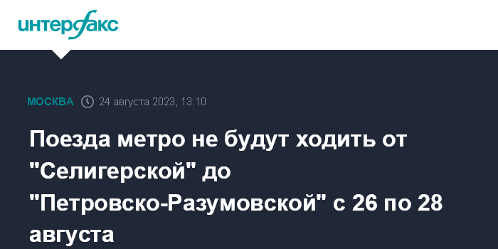 Поезда метро не будут ходить от "Селигерской" до "Петровско-Разумовской" с 26 по 28 августа