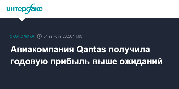 Москва. 24 августа. INTERFAX.RU - Крупнейший авиаперевозчик Австралии Qantas Airways Ltd. завершил 2023 финансовый год с прибылью и выручкой лучше ожиданий. Компания объявила обратный выкуп акций.