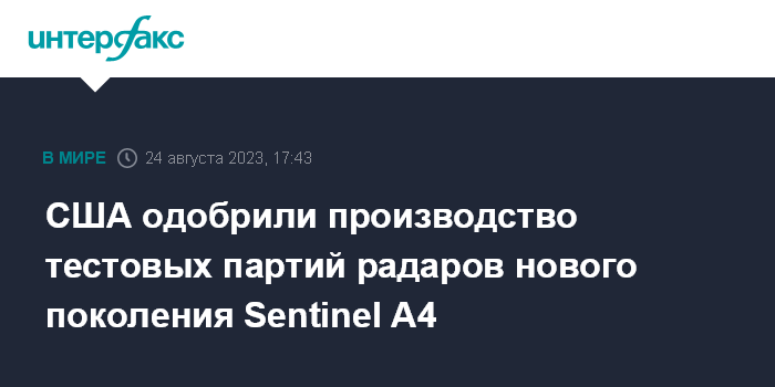 США одобрили производство тестовых партий радаров нового поколения Sentinel A4