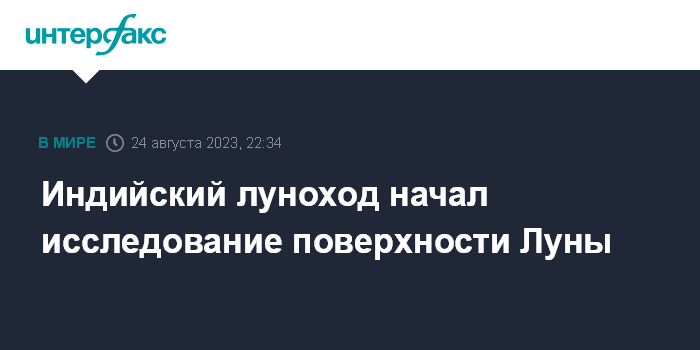 Москва. 24 августа. INTERFAX.RU - Луноход "Прагъян", доставленный накануне на Луну индийской автоматической станцией "Чандраян-3", начал исследования на поверхности естественного спутника Земли, сообщила в четверг Индийская организация космических исследований (ISRO).