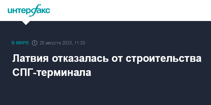 Москва. 25 августа. INTERFAX.RU - Вопрос строительства терминала сжиженного природного газа в Скулте (в 40 км к северу от Риги) снят с повестки дня, сообщил министр климата и энергетики Латвии Раймонд Чударс.