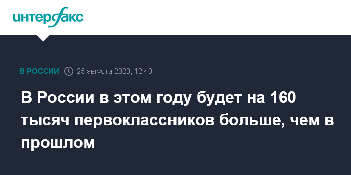 В России в этом году будет на 160 тысяч первоклассников больше, чем в прошлом