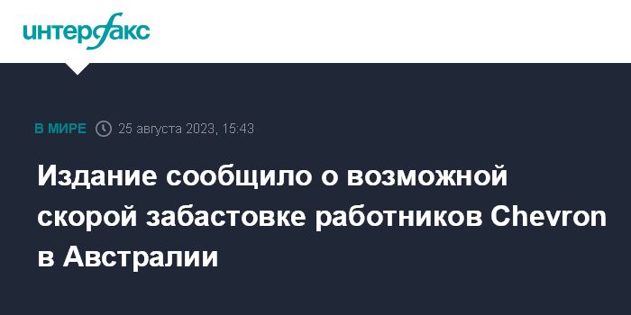 Издание сообщило о возможной скорой забастовке работников Chevron в Австралии