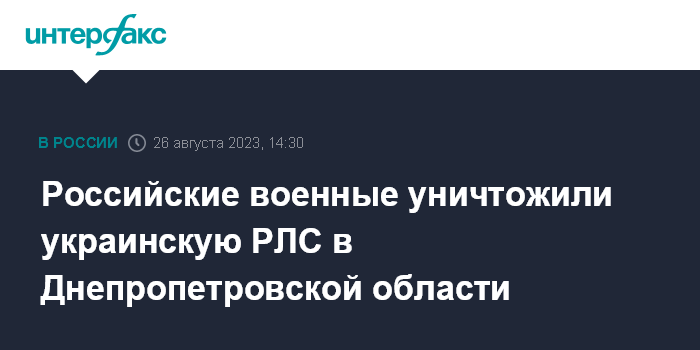 Москва. 26 августа. INTERFAX.RU - Украинская радиолокационная станция обнаружения и сопровождения воздушных целей уничтожена в Днепропетровской области, сообщил официальный представитель министерства обороны РФ Игорь Конашенков.