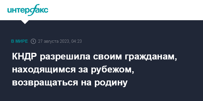 КНДР разрешила своим гражданам, находящимся за рубежом, возвращаться на родину