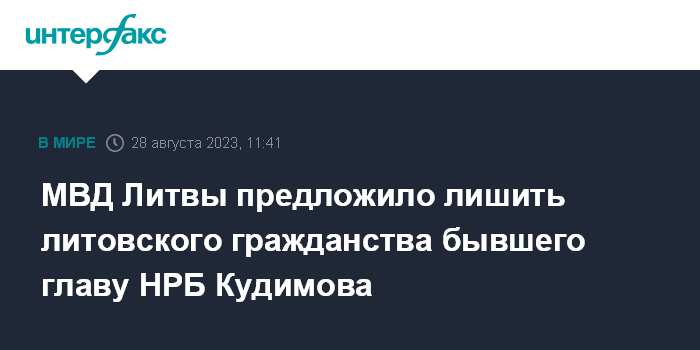 МВД Литвы предложило лишить литовского гражданства бывшего главу НРБ Кудимова