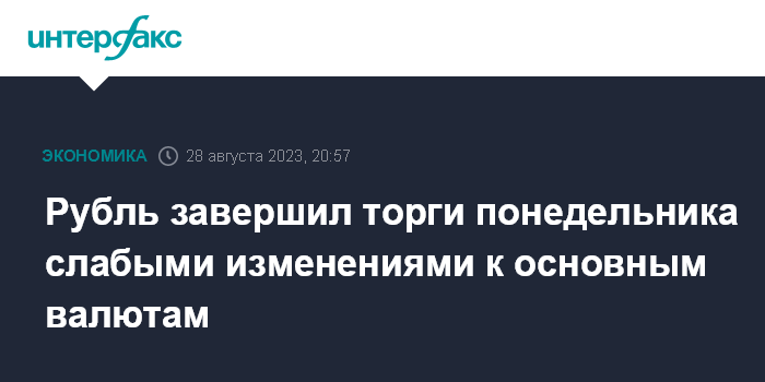 Как отмечают эксперты "Интерфакс-ЦЭА", рубль слабо изменился к основным валютам по итогам первых торгов недели после завершения налоговых выплат августа. На понедельник, 28 августа, пришелся единый день уплаты налогов, и компании-экспортеры перечислили в бюджет НДС, страховые взносы, НДФЛ, НДПИ и акцизы.