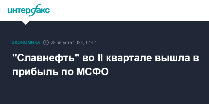 Москва. 29 августа. INTERFAX.RU -"Славнефть" (на паритетных началах принадлежит "Роснефти" и "Газпром нефти") во втором квартале 2023 года получила 82 млн рублей чистой прибыли по МСФО, сообщается в отчете компании.
