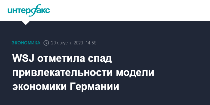 Москва. 29 августа. INTERFAX.RU - Экономическая модель Германии, успешно работавшая долгие годы, теряет свою привлекательность, при этом разрозненность местных политиков мешает им найти решения назревших проблем, пишет The Wall Street Journal.