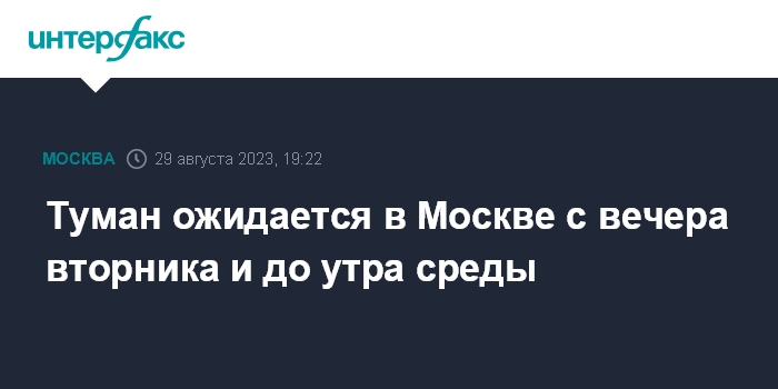 Москва. 29 августа. INTERFAX.RU - Видимость в столичном регионе ближайшей ночью резко ухудшится из-за тумана, сообщается в телеграм-канале комплекса городского хозяйства во вторник.