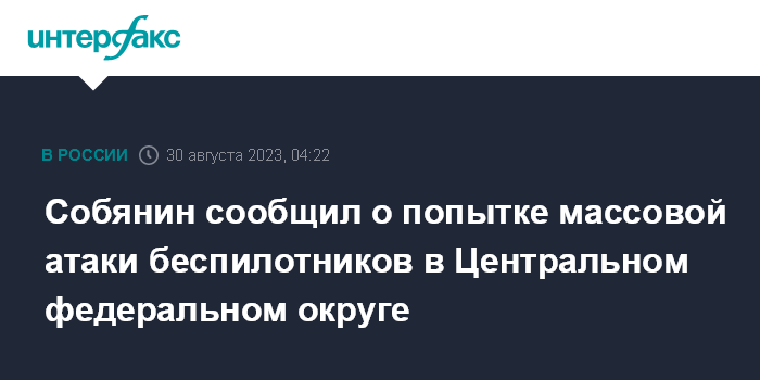 Собянин сообщил о попытке массовой атаки беспилотников в Центральном федеральном округе