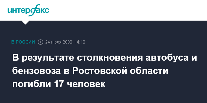 Москва. 24 июля. INTERFAX.RU - По предварительным данным, в ДТП на трассе Ростов-на-Дону - Краснодар погибли 17 человек, еще около 40 человек считаются пострадавшими, сообщил агентству "Интерфакс-Юг" представитель оперативного штаба по ликвидации последствий данного происшествия.