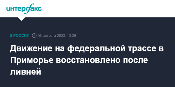 Москва. 30 августа. INTERFAX.RU - Автомобильное сообщение на федеральной трассе А-370 Уссури, соединяющей Владивосток и Хабаровск, ранее ограниченное из-за переливов, восстановлено, сообщает в среду пресс-служба "Примавтодора".
