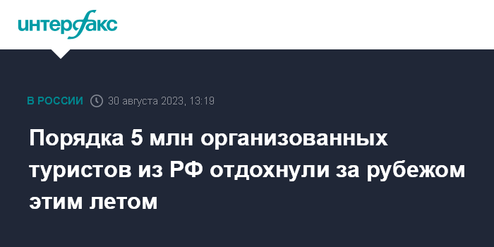 Порядка 5 млн организованных туристов из РФ отдохнули за рубежом этим летом