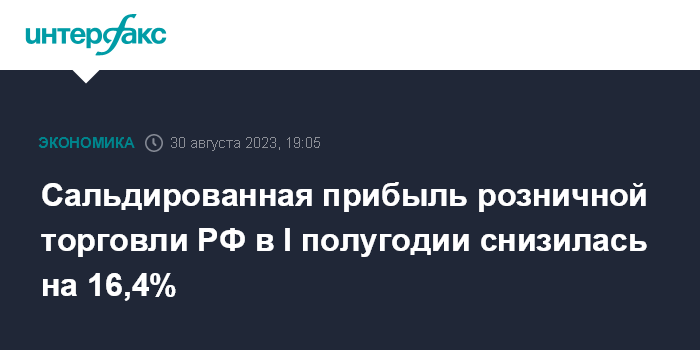 Сальдированная прибыль розничной торговли РФ в I полугодии снизилась на 16,4%