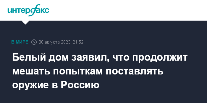 Белый дом заявил, что продолжит мешать попыткам поставлять оружие в Россию
