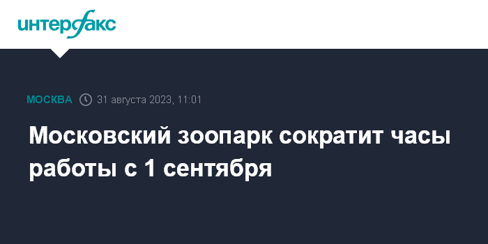Москва. 31 августа. INTERFAX.RU - Московский зоопарк предупредил, что с 1 сентября столичный зоопарк изменит режим работы и будет открываться в 9:00 и закрываться в 20:00.