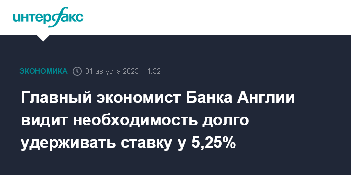Главный экономист Банка Англии видит необходимость долго удерживать ставку у 5,25%