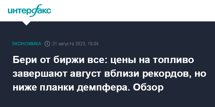 Бери от биржи все: цены на топливо завершают август вблизи рекордов, но ниже планки демпфера. Обзор