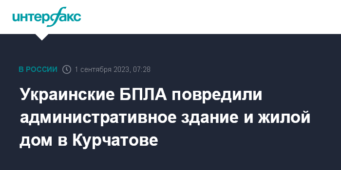 "Утром Курчатов атаковали два украинских беспилотника. Повреждены административное здание и жилой дом. На место выехали специалисты, они оценивают размеры ущерба", - написал глава региона в своем телеграм-канале в пятницу.