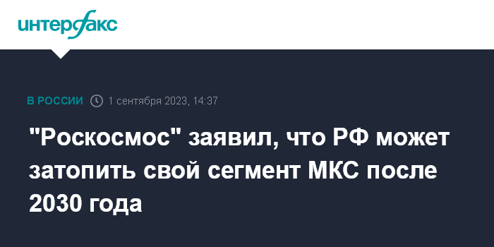 30 июня глава госкорпорации заявил, что МКС перестанет существовать в нынешнем виде после 2030 года.
