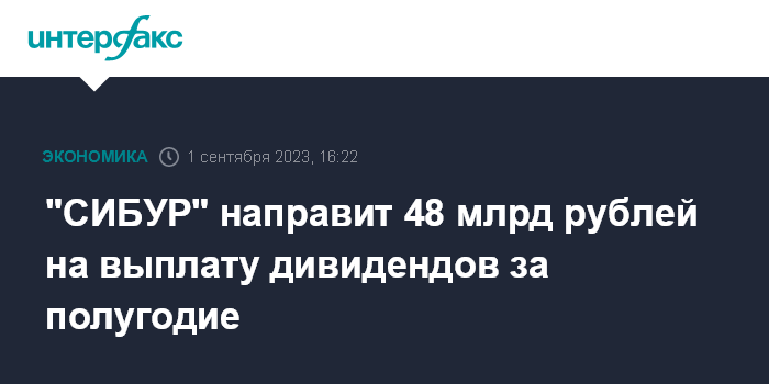 "СИБУР" направит 48 млрд рублей на выплату дивидендов за полугодие