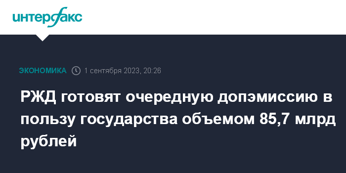 РЖД готовят очередную допэмиссию в пользу государства объемом 85,7 млрд рублей