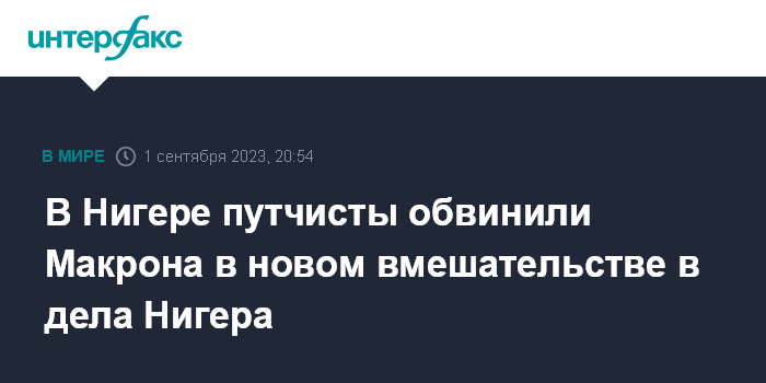 "Правительство Республики Нигер с ошеломлением ознакомилось с высказываниями президента Франции, сделанными в понедельник, 28 августа, - заявил представитель путчистов Амаду Абдраман в эфире государственного телевидения. - Эти высказывания представляют собой дальнейшее вопиющее вмешательство во внутренние дела Нигера".