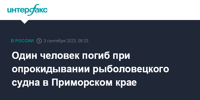 Один человек погиб при опрокидывании рыболовецкого судна в Приморском крае