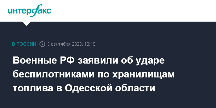 Москва. 3 сентября. INTERFAX.RU - Российские войска нанесли групповой удар беспилотниками по украинским топливохранилищам в порту Рени Одесской области, заявил официальный представитель Минобороны РФ Игорь Конашенков на брифинге в воскресенье.