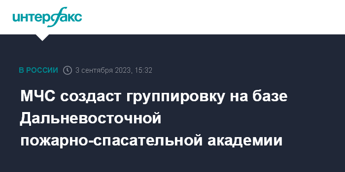 Москва. 3 сентября. INTERFAX.RU - Аэромобильная группировка МЧС РФ будет создана на базе пожарно-спасательной академии на Дальнем Востоке, сообщили "Интерфаксу" в пресс-службе министерства в воскресенье.