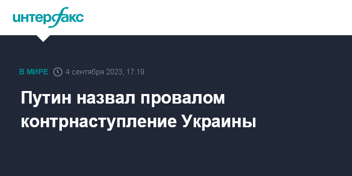 Москва. 4 сентября. INTERFAX.RU - Президент РФ Владимир Путин назвал провалом результаты так называемого украинского контрнаступления.