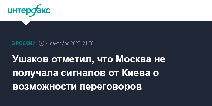 Ушаков отметил, что Москва не получала сигналов от Киева о возможности переговоров