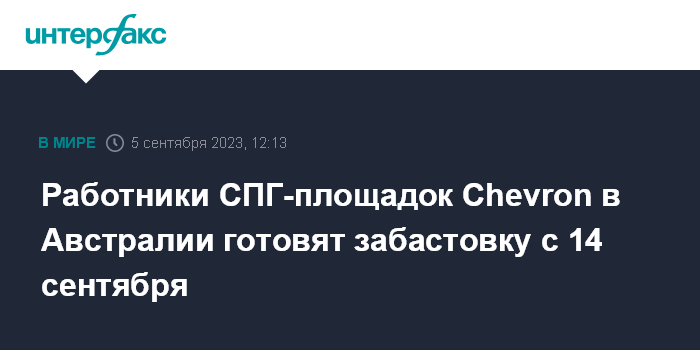 Работники СПГ-площадок Chevron в Австралии готовят забастовку с 14 сентября