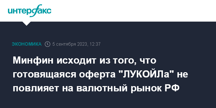 Минфин исходит из того, что готовящаяся оферта "ЛУКОЙЛа" не повлияет на валютный рынок РФ