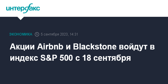 Акции Airbnb и Blackstone войдут в индекс S&P 500 с 18 сентября