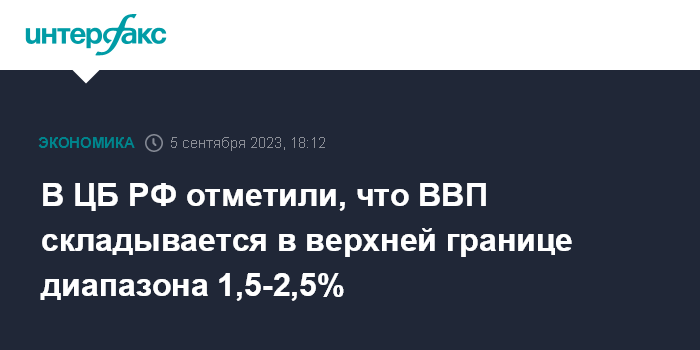 В ЦБ РФ отметили, что ВВП складывается в верхней границе диапазона 1,5-2,5%