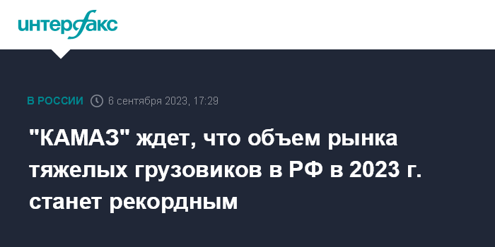 "КАМАЗ" ждет, что объем рынка тяжелых грузовиков в РФ в 2023 г. станет рекордным